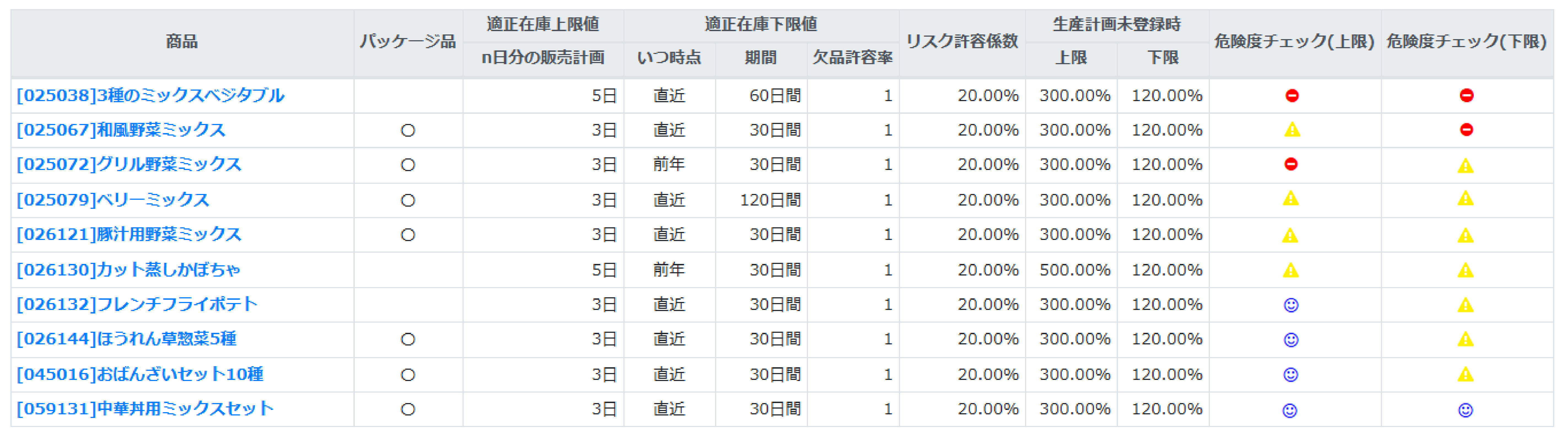 上限の閾値を超える場合は「過剰在庫」、下限を下回る場合は「欠品」と、視認性が高くいち早く問題を把握することができます。