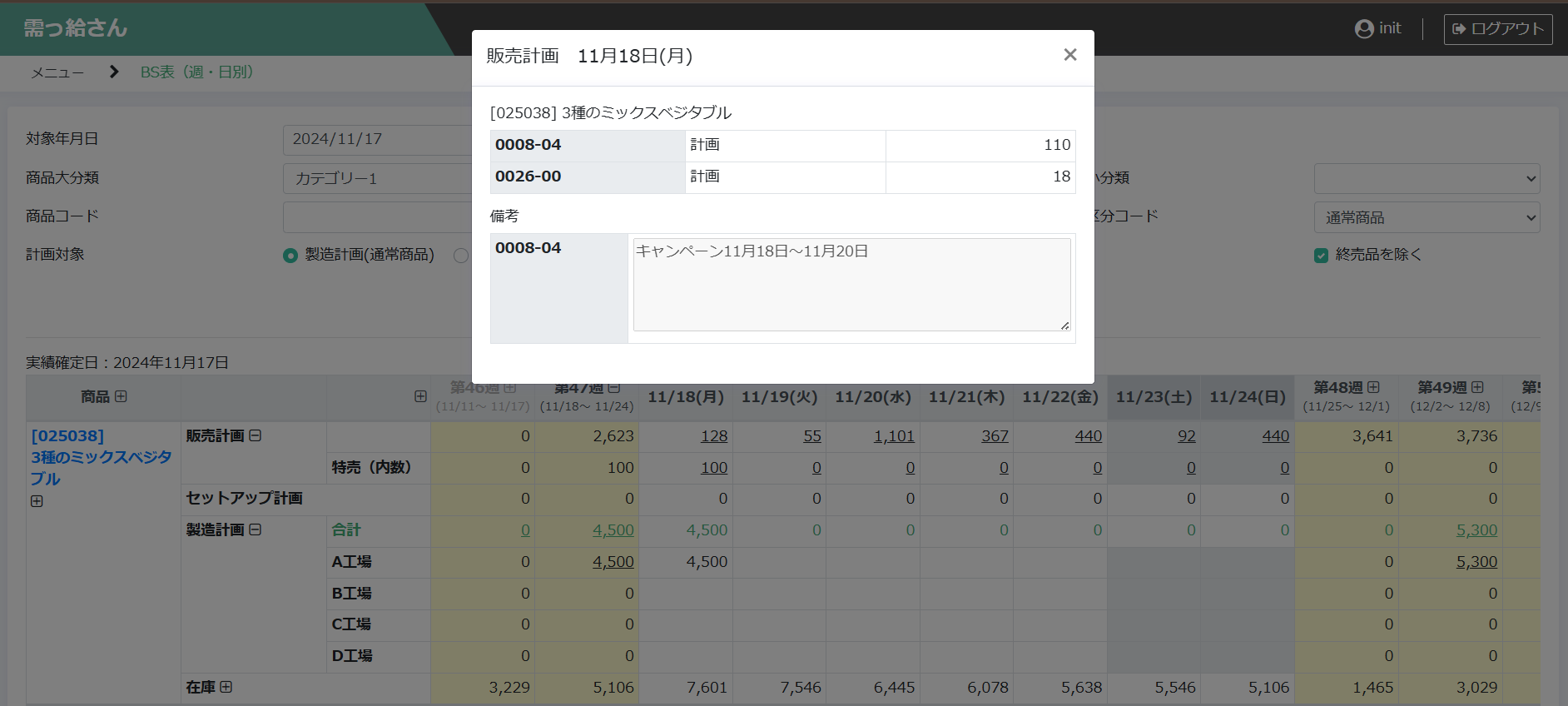 ・特売情報も合わせて管理できるので、生産管理部門はどこで盛り上がるかを把握できる。