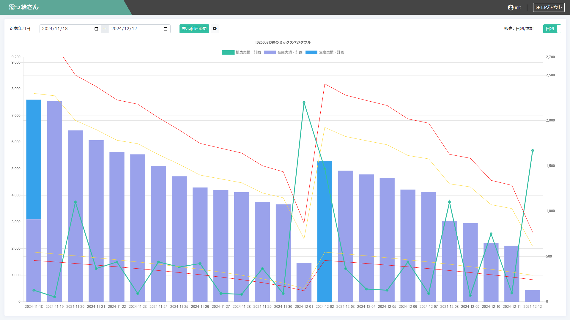 「需っ給さん」は、計画の差異を即座に把握できる機能があり、