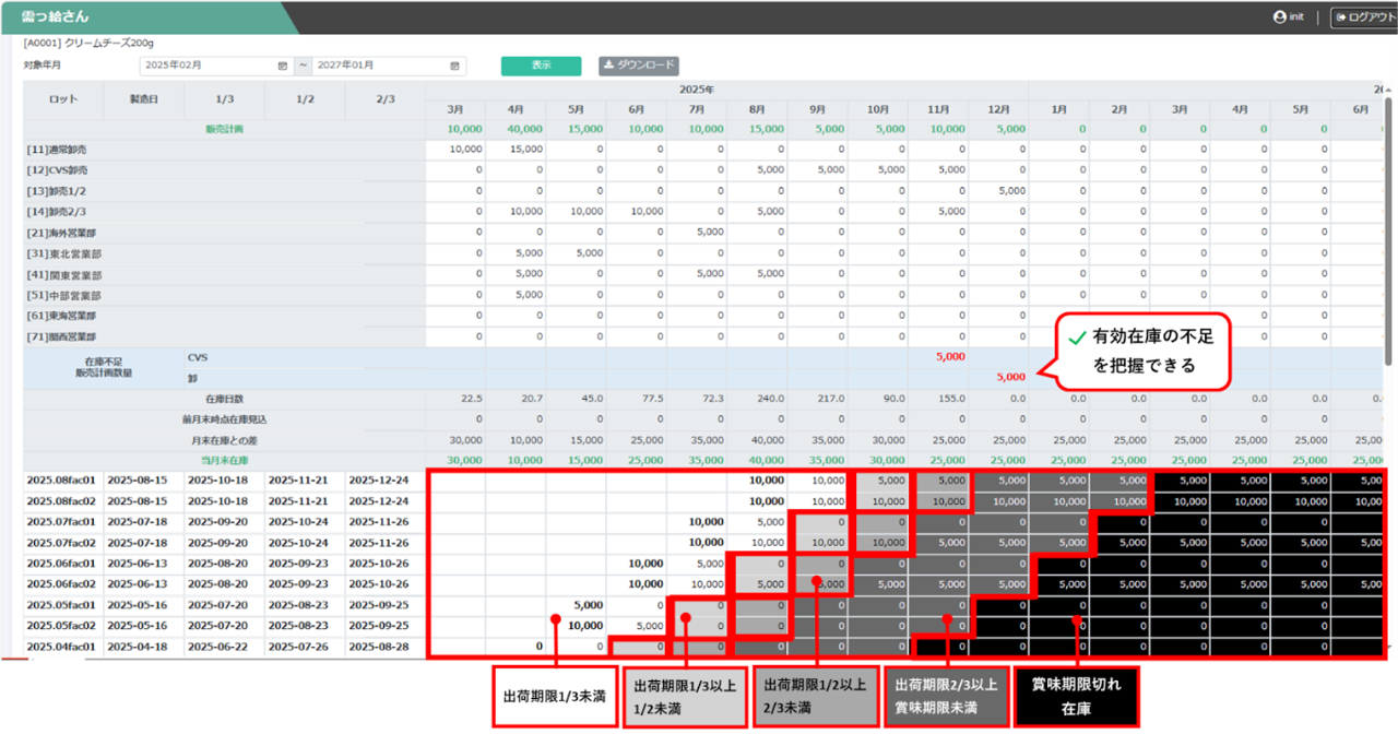 販売計画から在庫を引き当て、将来的に有効在庫がどのくらいあるのかを把握のうえ、需給を調整することが可能になります。